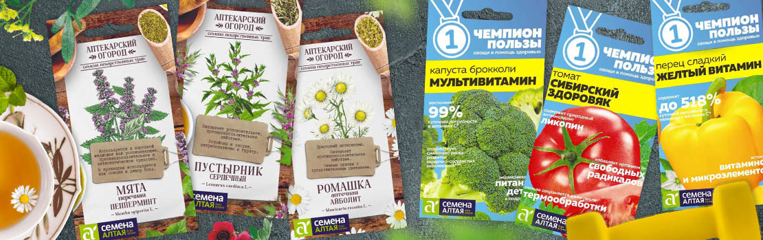 Для тех, кто заботится о своем здоровье и хочет вырастить полезные овощи и травы, предлагаем серию «Аптекарский огород» и «Чемпионы пользы»