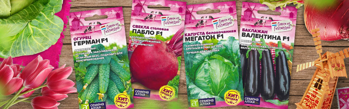 Серия «Семена из Голландии» включает в себя такие известные сорта и гибриды, как огурец Герман F1, гигантский лук Эксибишен, который можно вырастить из семян за один сезон, капусту Мегатон F1.